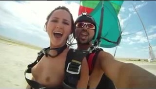 Парочка занялось сексом в свободном падении, прыгнув с парашютами с борта вертолета. Экстремальный секс в воздухе это жесть!