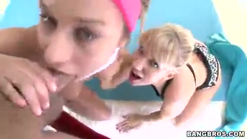 Оральный секс двух красоток с большим членом